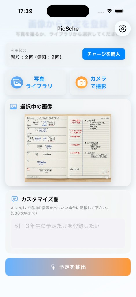 画像は予定抽出後すぐに削除。個人情報を保存しない設計。Images deleted right after extraction. We don’t store personal data.